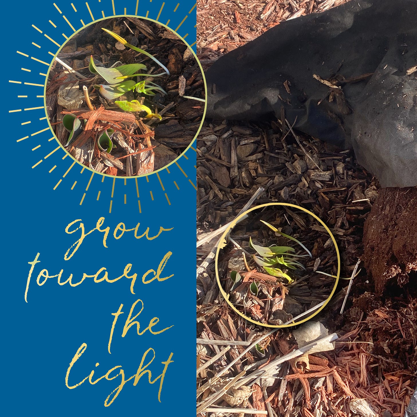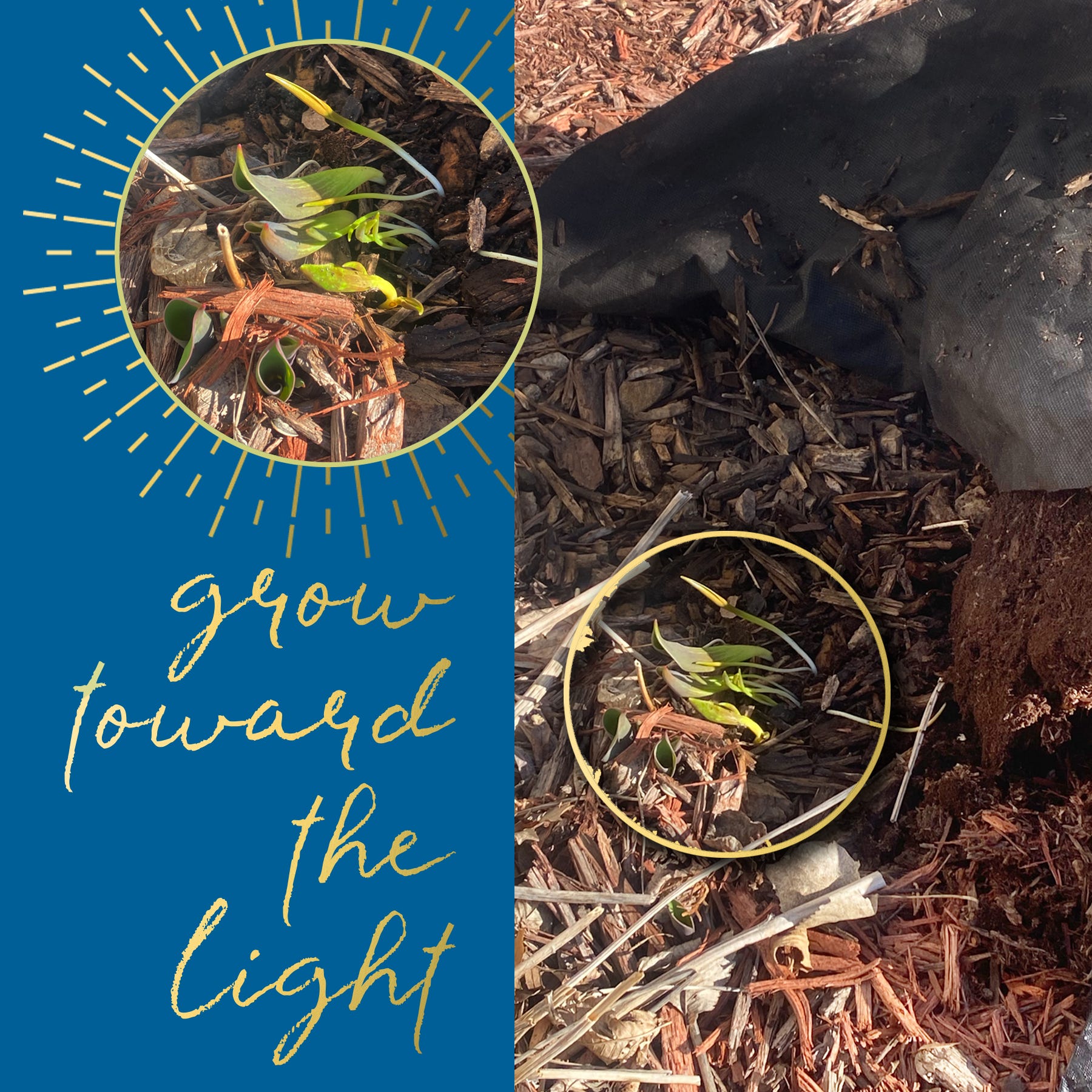 And perhaps most significant for me was that In spite of my annual missteps of burying the bulbs more each year, they STILL wanted to survive! And in the photo I share, it is so clear that they fight to survive by GROWING TOWARD THE LIGHT.
